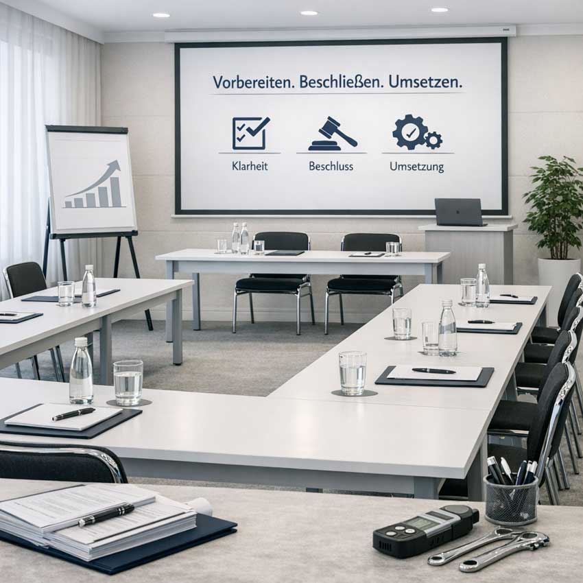 Eine gute Versammlung schafft Klarheit. Ich bereite Entscheidungen verständlich vor und begleite die Beschlussumsetzung konsequent, damit Maßnahmen auch wirklich umgesetzt werden.